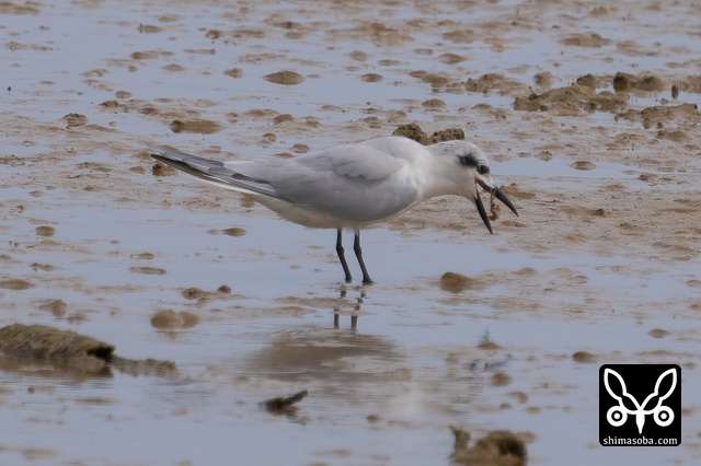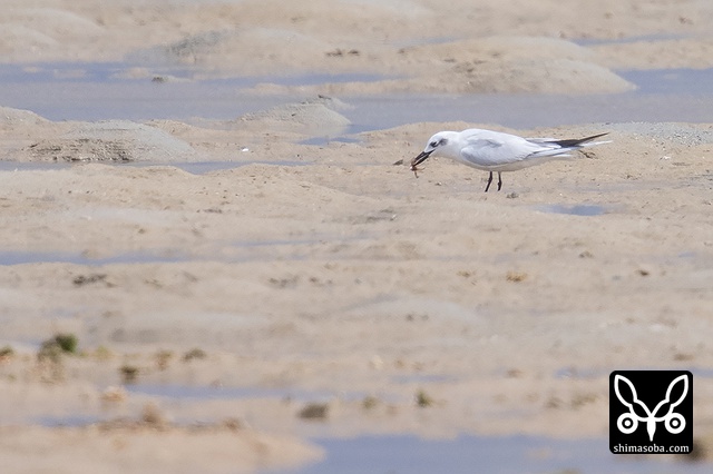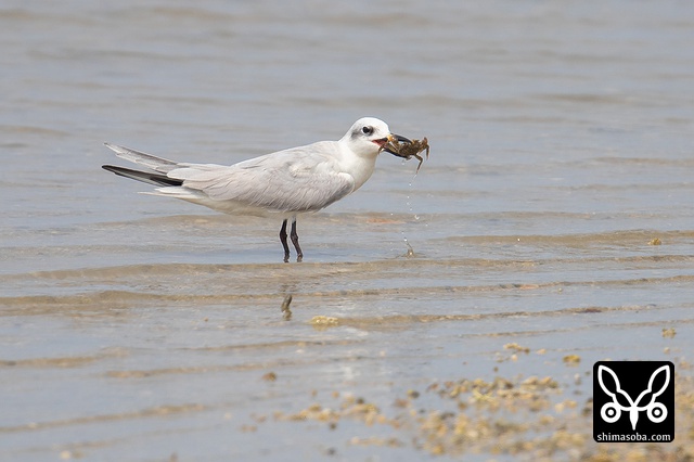 ヤマトオサガニを捕まえたハシブトアジサシ。