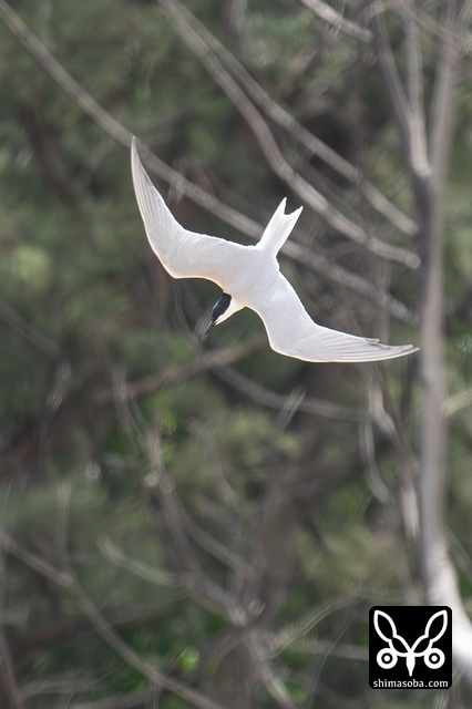 飛ぶハシブトアジサシ。逆光で残念でした。