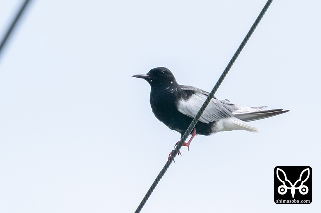 電線に止まるハジロクロハラアジサシ。