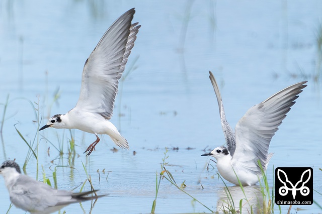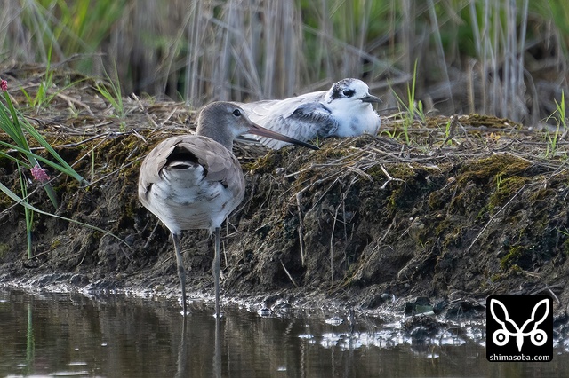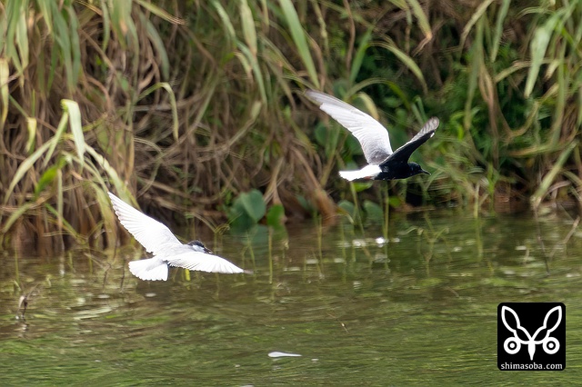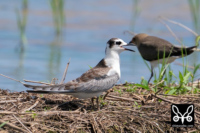 畔にはハジロクロハラアジサシやツバメチドリが休んでいます。