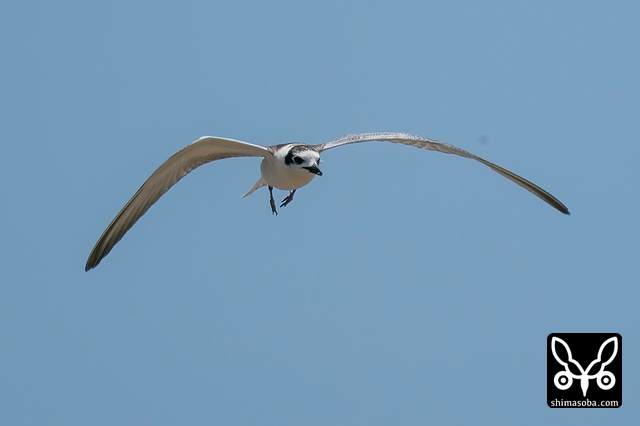 こちらへ向かってくるハジロクロハラアジサシ。