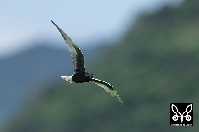 獲物を探しながら飛び回るハジロクロハラアジサシ。