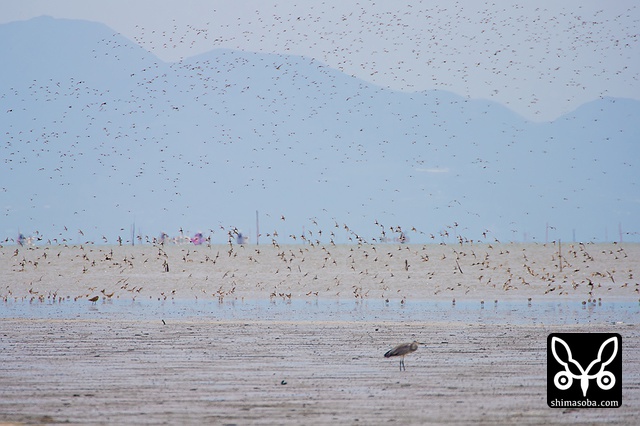 数え切れないほどのシギとチドリの大群。ハマシギが多かった。
