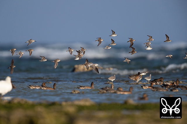 沖縄はハマシギ少なめですが、今季は最大20羽の群れが入っています。