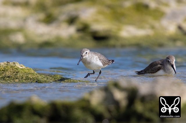 ハマシギは2カ所合わせて25羽が滞在しています。石垣島ではこれだけの数が長逗留するのは比較的珍しいです。手前が第1回冬羽で手前が成鳥で夏羽から冬羽へ換羽中。