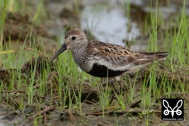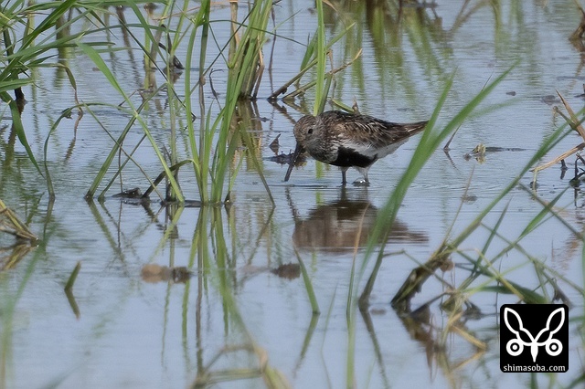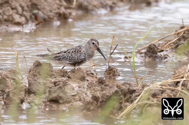 ハマシギも到着。1羽が田んぼに飛来しました。