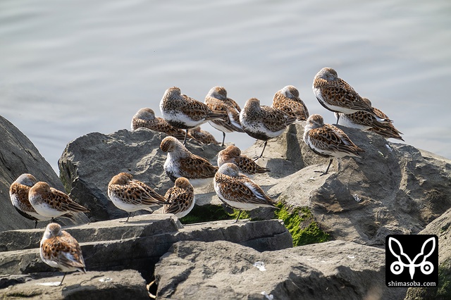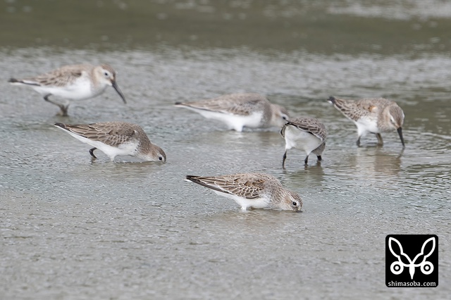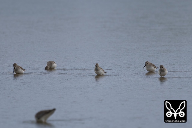 こちらは数十羽と賑やかに越冬モードのハマシギ冬羽。