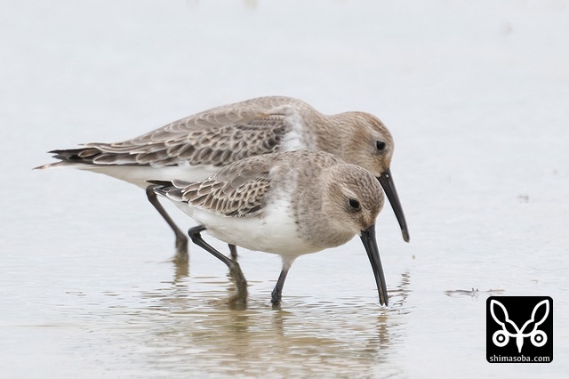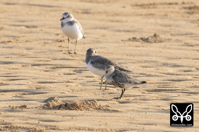 ハマシギはまだ第1回冬羽。長旅で酷使してボロボロです。