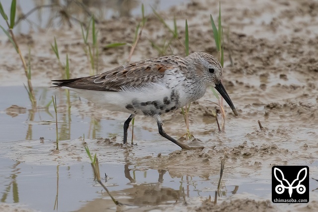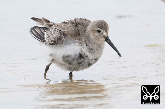 ハマシギ幼鳥。十数羽いた群れですが、この日は1羽だけになっていました。