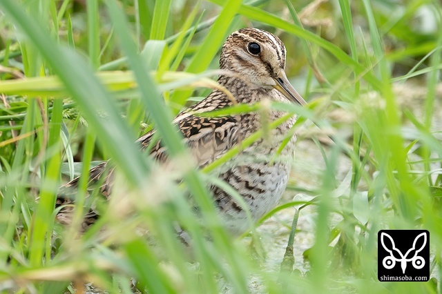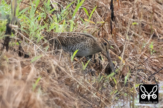 草むらに隠れるハリオシギ。