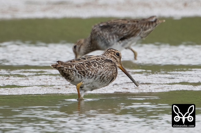 ハリオシギ幼鳥と奥に下半身だけ見えるのはチュウジシギ幼鳥。