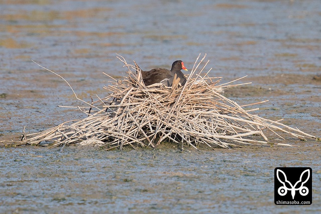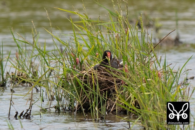 抱卵するバン。散歩など人通りの多い農道脇に巣を作っていました。