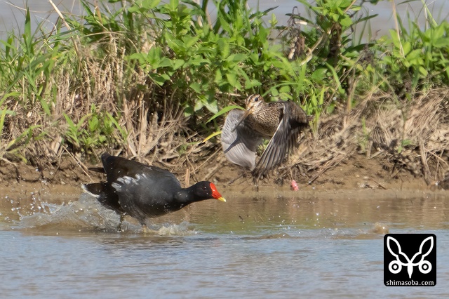 ジシギを見つけると飛ばしまくってくれるバン。このおかげで尾羽の写真撮れた。^^