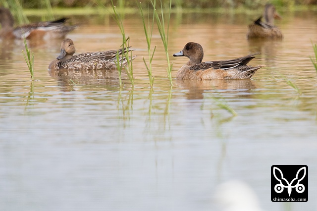 ヒドリガモは数羽の群れ。こちらは幼鳥と思われる個体。