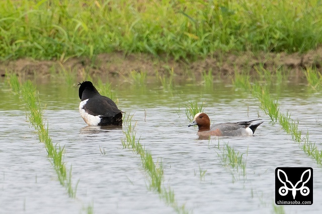 ヒドリガモも水路や田んぼで増えています。