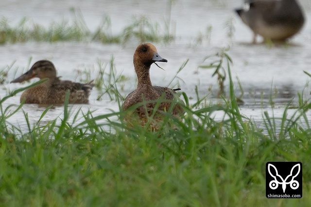 ヒドリガモもオスが2羽とメスが1羽。