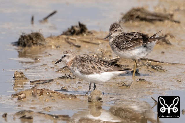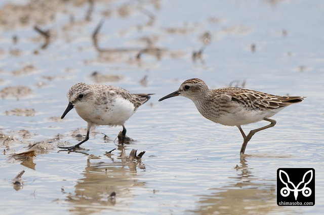 ヒバリシギ成鳥(手前)と幼鳥。