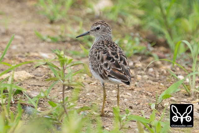 夏羽のヒバリシギは数羽で飛来。