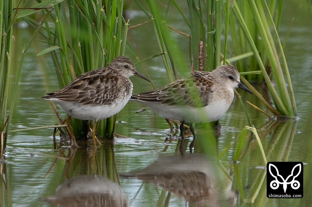 トウネンとヒバリシギ。