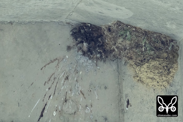 ヒメアマツバメの巣。付近の樹木数本が根元から切られた倒されていました。違法ですね。巣の写真を撮ろうとしたものの仕業と思われます。ひどいガイドがいるものです…。^^;