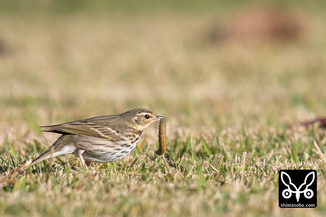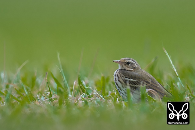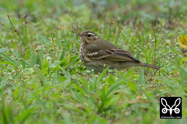 沖縄の芝は冬でも美しい緑。ビンズイは芝生に潜む小さな虫を捕っていた。
