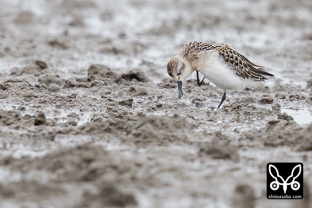 たくさん休むシギチの群れの中にヘラシギが1羽だけいました。双眼鏡で探しまくってやっと見つけられました。^^ 自宅に帰ってから調べると、ヘラシギは3日前の9月12日に初認されたそうです。いいタイミングでした。^^かなり遠いので超トリミング。^^;