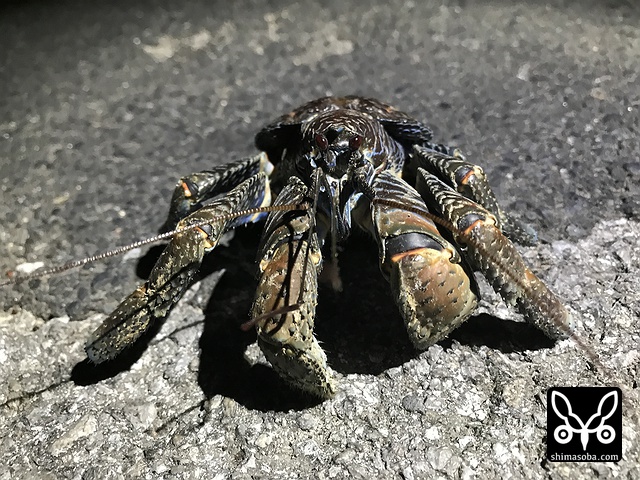 小型のヤシガニが道路を横断していた。
