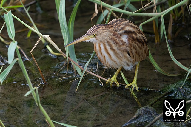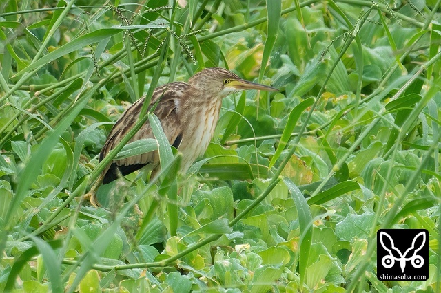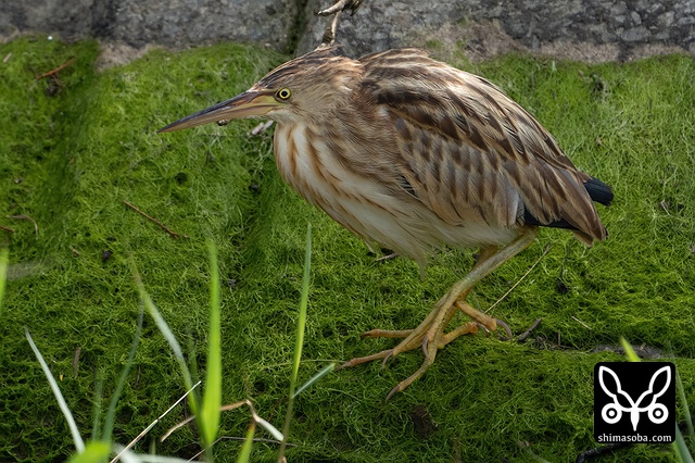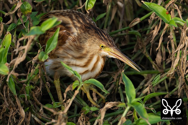 草むらに身を潜めるヨシゴイ幼鳥。