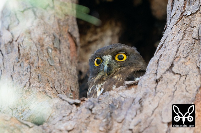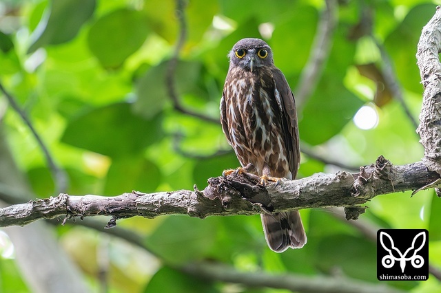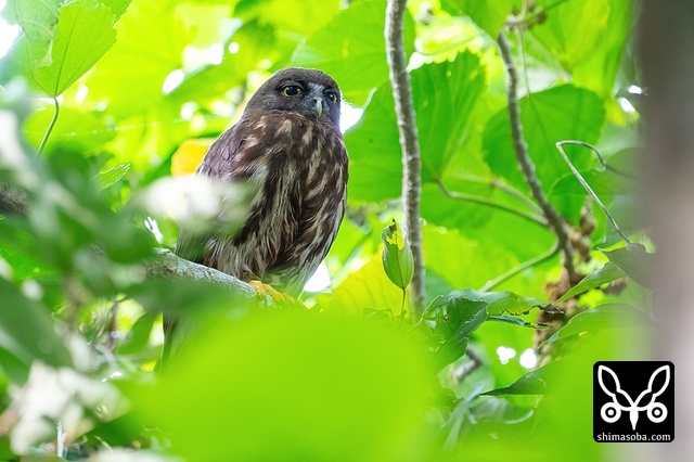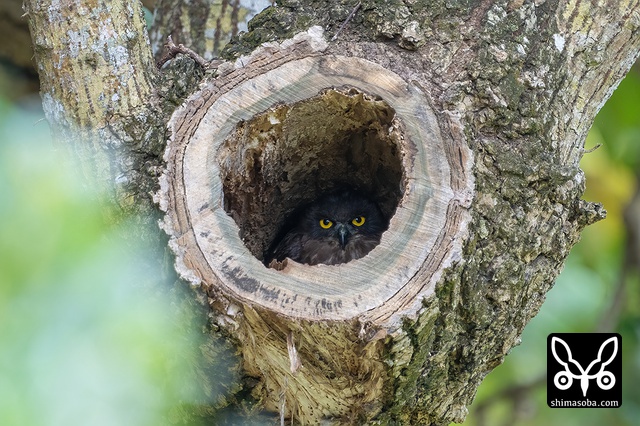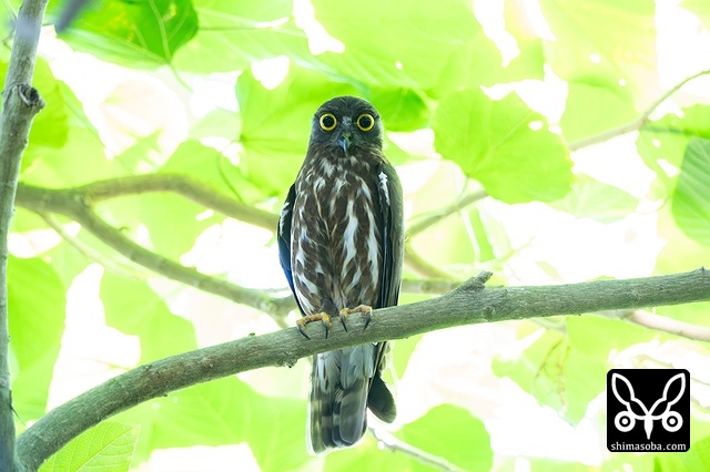 新規ポイントのリュウキュウアオバズク。これはオス個体。このペアの巣の目の前にはアカショウビンが巣を掘っていました…。アカショウビンの方が先に巣だったらアオバズクに襲われそうです…。^^; アオバズクは4カ所で営巣中。