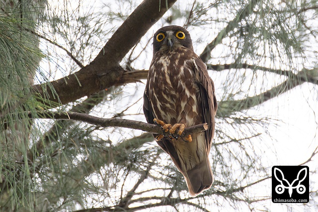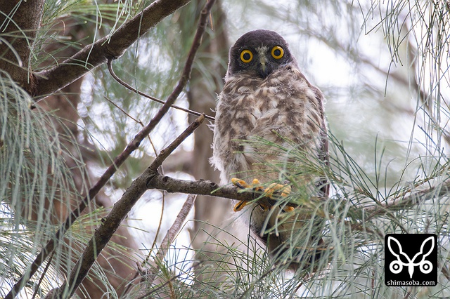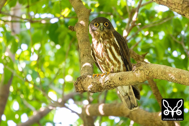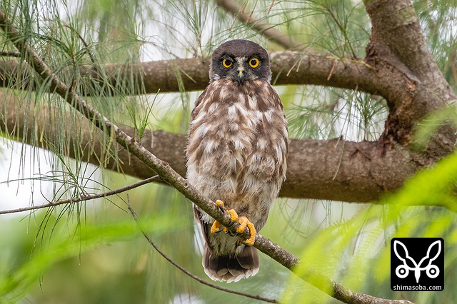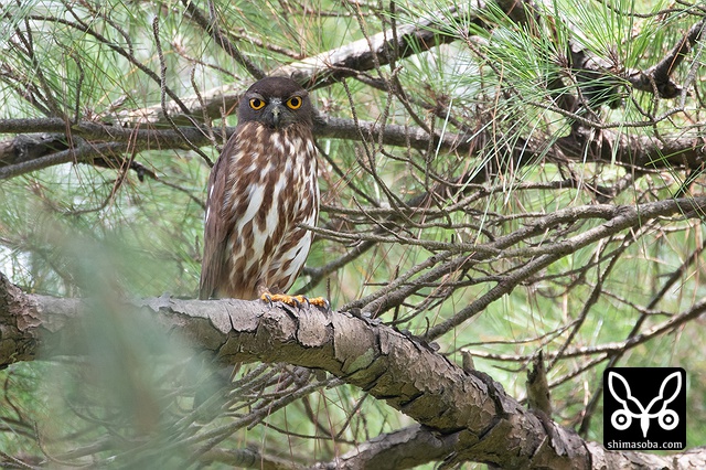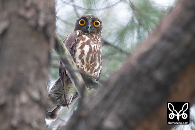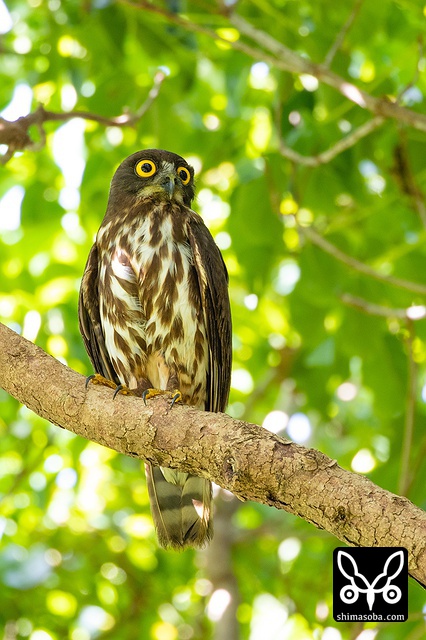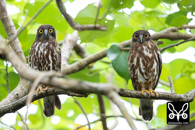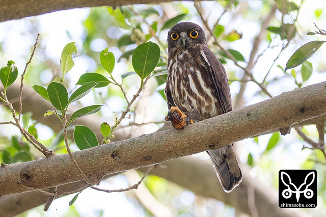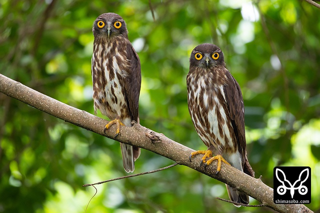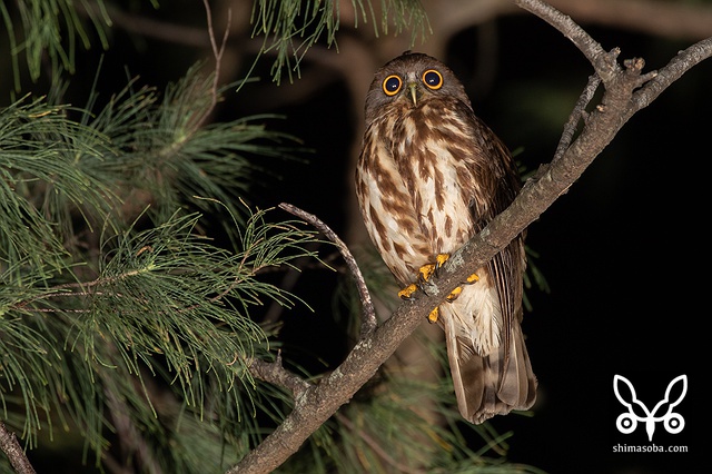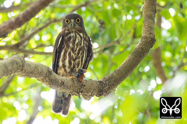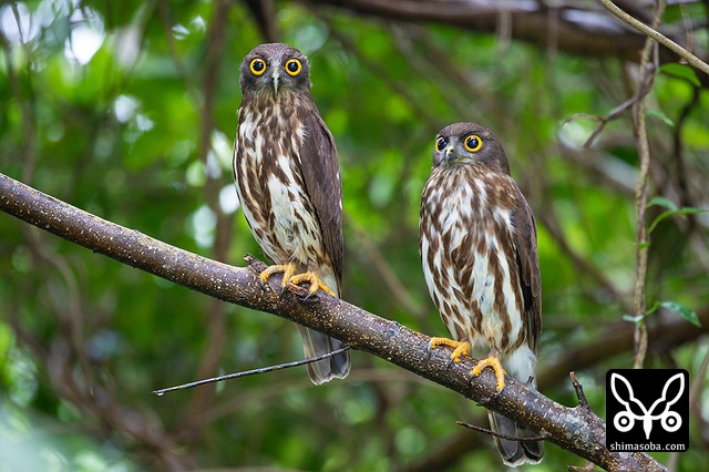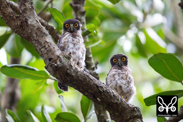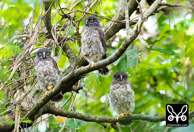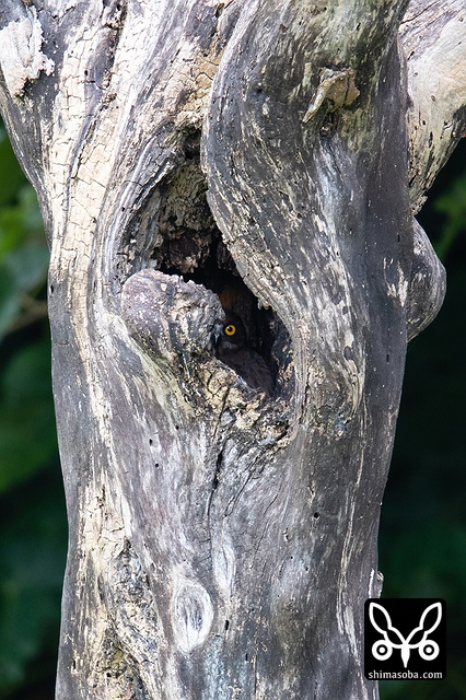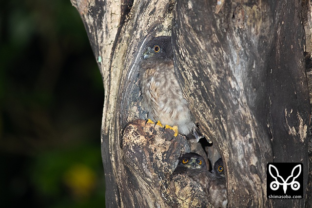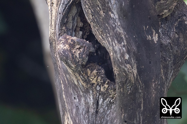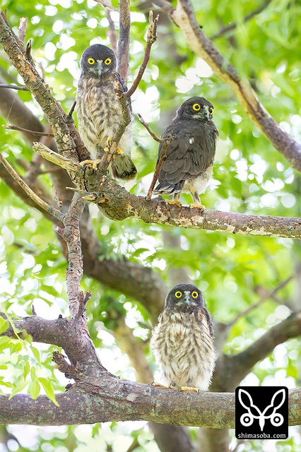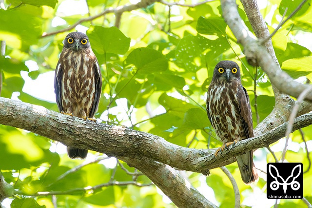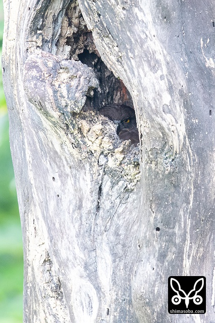 こちらのアオバズクは昨夜の午前2時以降というかなり遅い時間に巣立ったようです。 `この日に予想した巣立ち日 <https://shimasoba.com/blog/1408/>`_ がぴったり当たりました。^^ 左の親鳥はメスです。