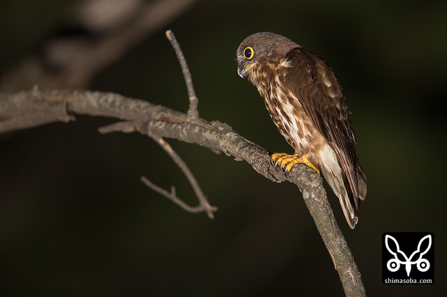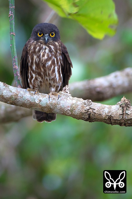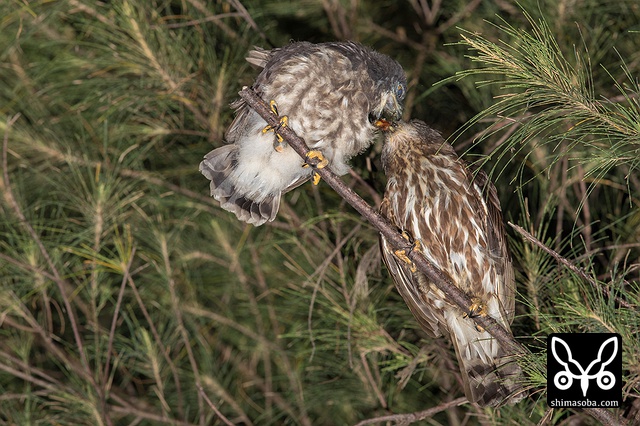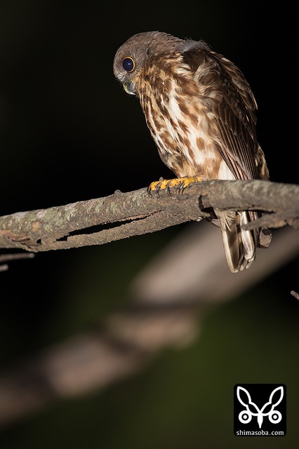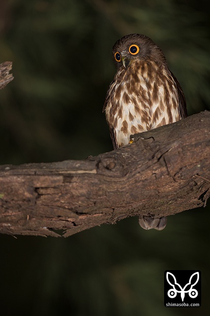 ヒナが大きくなり巣から追い出されたメスのアオバズク。狭い樹洞で抱卵するので次列風切と雨覆が擦り切れているのが見て取れますね。 `ここの個体は、くちばしの模様で雌雄が区別できます。 <https://shimasoba.com/blog/1041/>`_