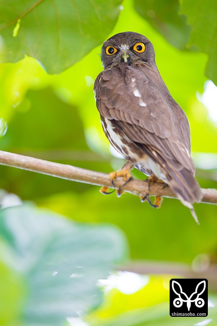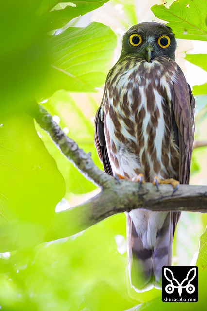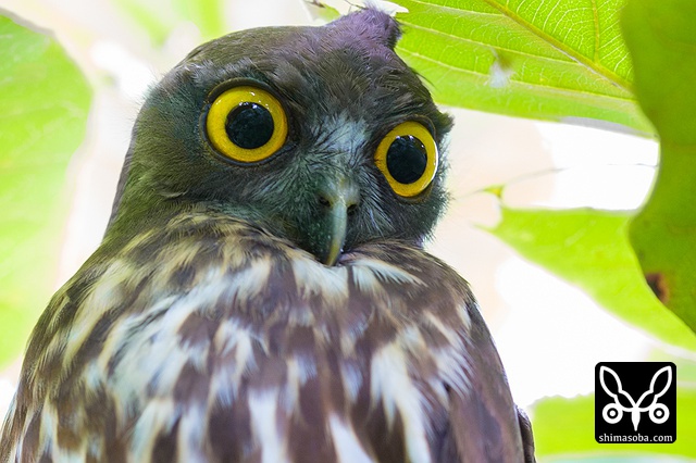 日差しが強く、かなり緑かぶりするので、現像がなかなか難しかった。^^; ロクヨンしか持っていなかったので、目一杯下がってこのサイズ。次回は、200mmを持って行こう。アオバズクは、緑の似合うフクロウです。
