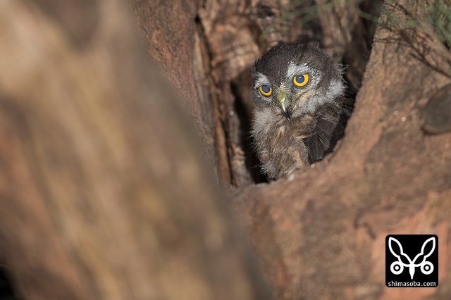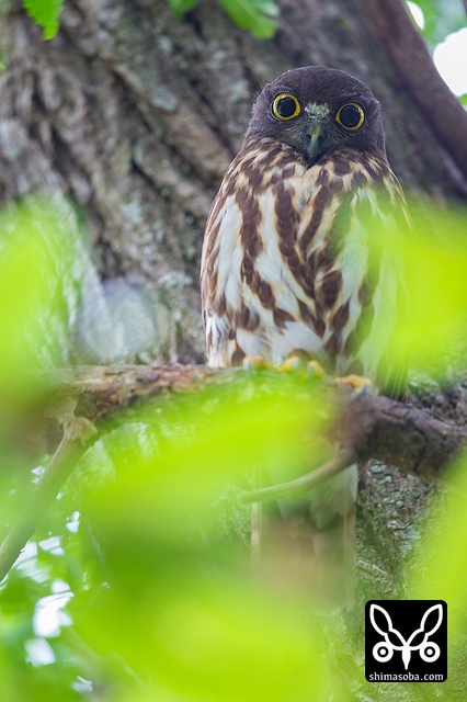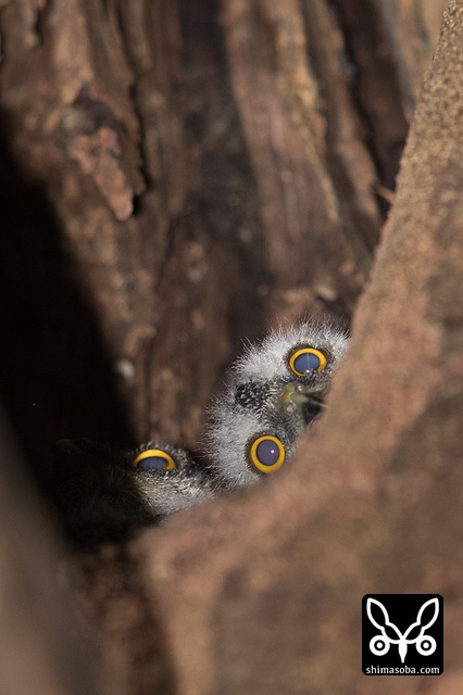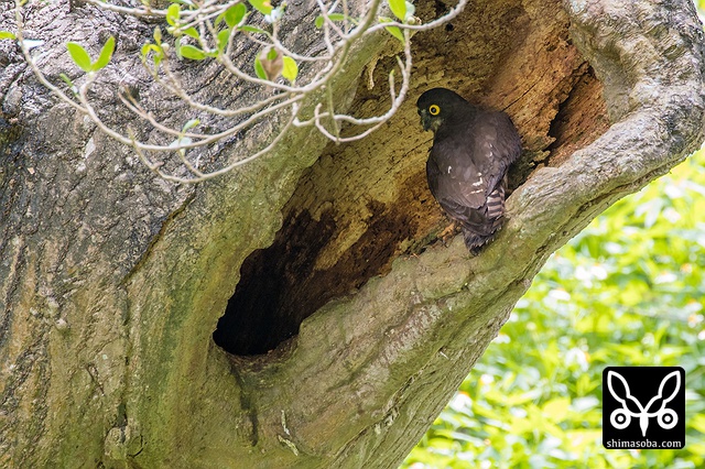 こちらは別のアオバズク。ここもオオコノハズクと営巣場所がかぶっている。最初の2016年に使っていた樹洞は、 `ことしはオオコノハズク取られた <https://shimasoba.com/blog/1200/>`_ 。^^;