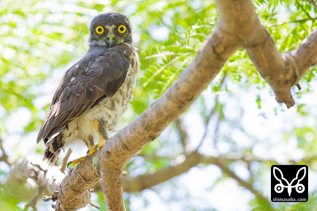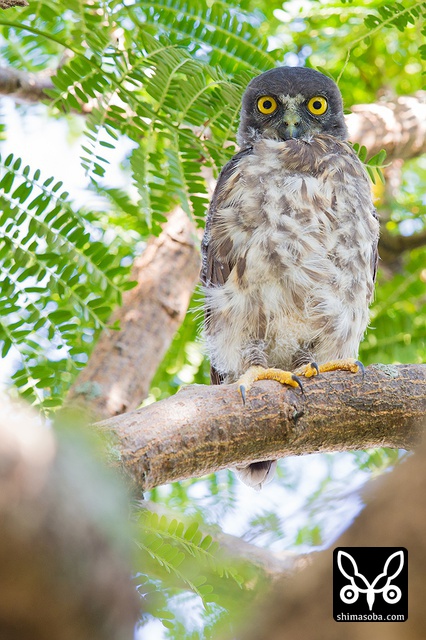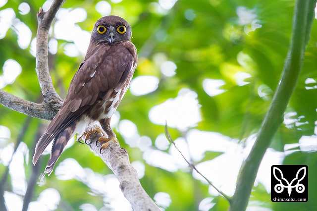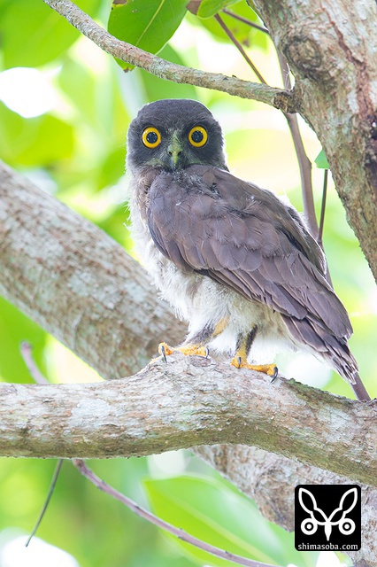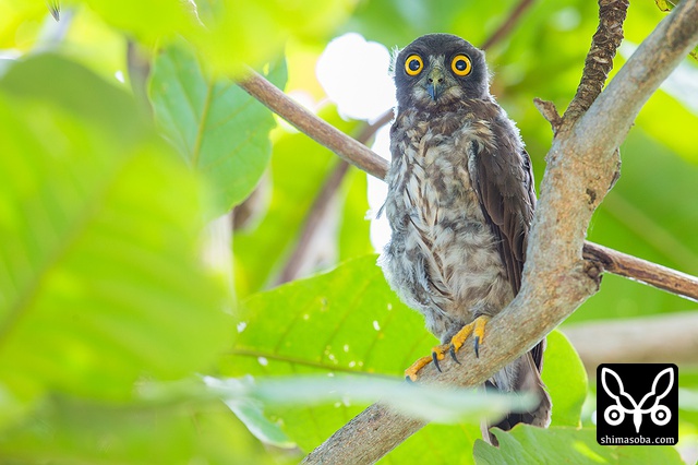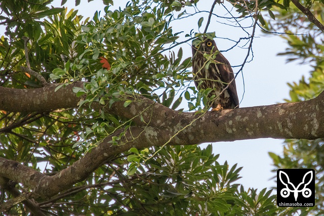 頭上に現れたアオバズク。スコール直後だったので、羽でも乾かしに来たのでしょうか?`つい先日も同じようなシーン`_ にめぐり合っています。.. _つい先日も同じようなシーン: https://shimasoba.com/blog/694/