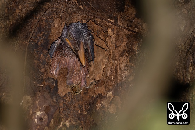 巣の前で見張に立つアカショウビン。この翌日に巣立ちました。このアカショウビンが繁殖しているポイントは ツミが子育て中なのとカタグロトビは巣立ったヒナ3羽とその親鳥2羽がうろうろしているという危険ポイントです。