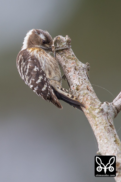 枝をつついては小さな虫を捕まえているようでした。リュウキュウコゲラのオス。