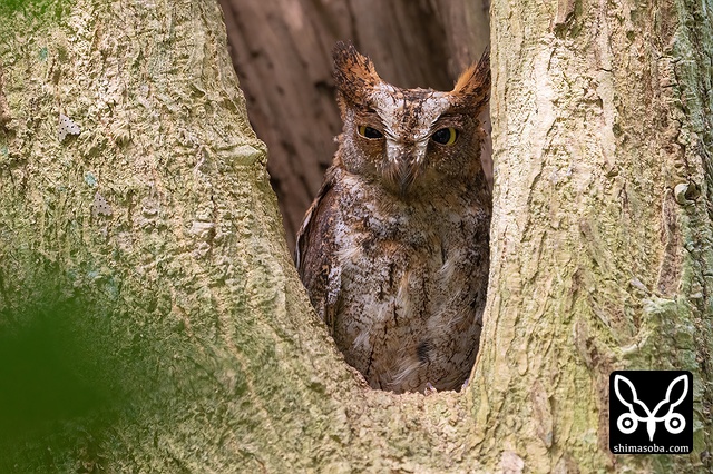 この個体はいつも見ているリュウキュウコノハズクと模様がずいぶん違うので口笛でリュウキュウコノハズクの真似をしてコールバックを試みましたが、無反応。リュウキュウなのか本土のコノハズクなのかはたまた他の亜種なのか気になりますね。