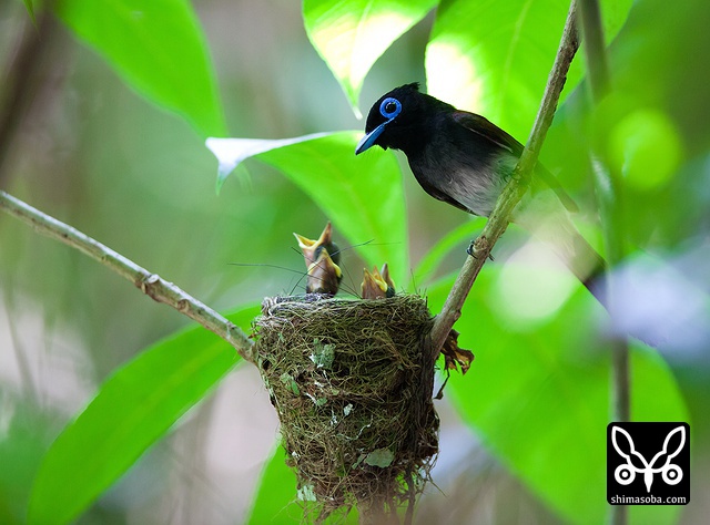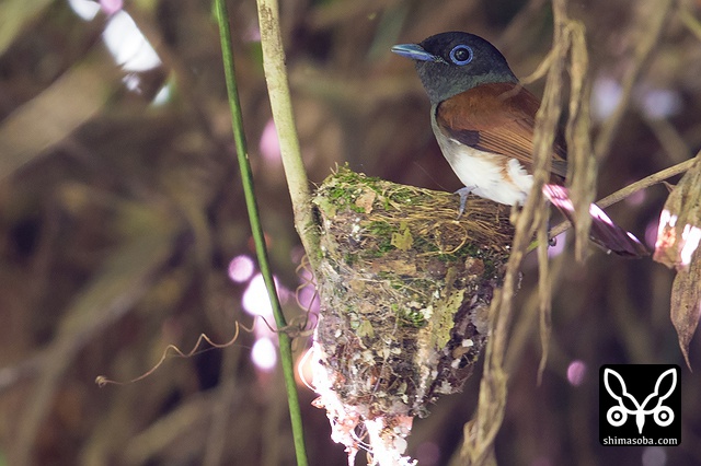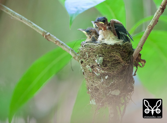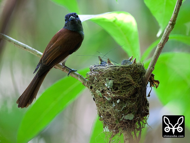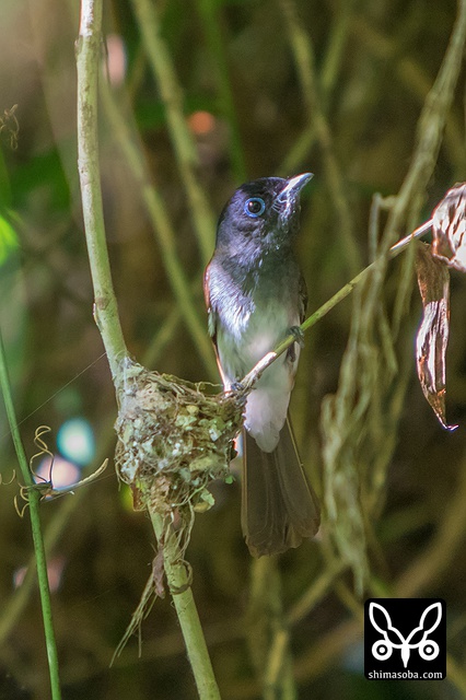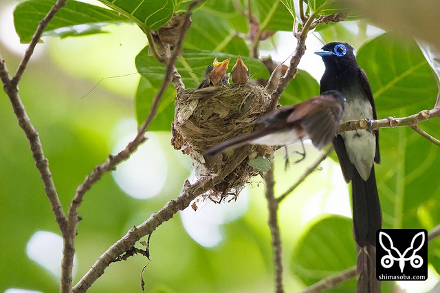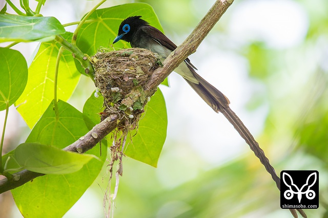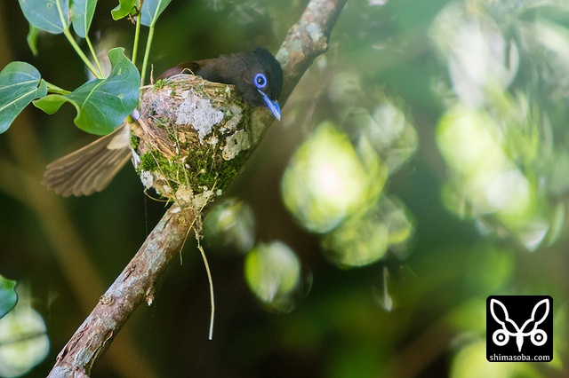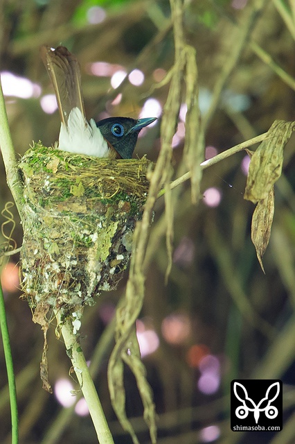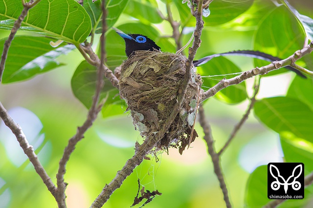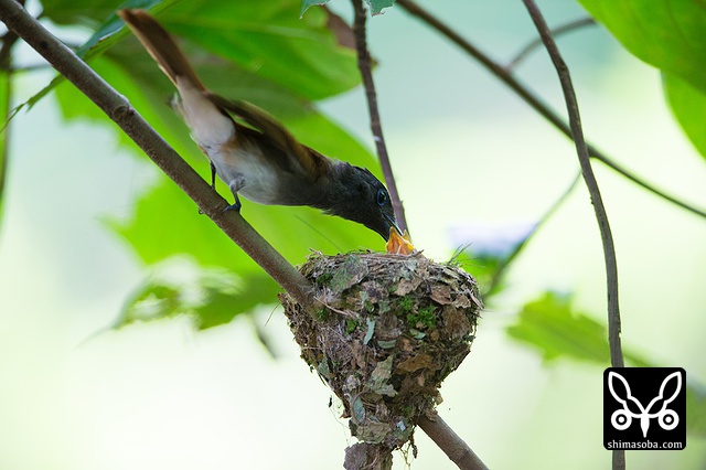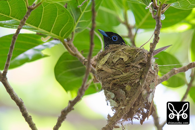 巣に座り産座をととのえたり、巣の外壁を手直ししたりしていました。その間、数十秒。サンコウチョウは巣が完成してから3日後ぐらいに産卵するので、今月末産卵の6月23〜26日ぐらいにはヒナの巣立ちが見られることでしょう。^^