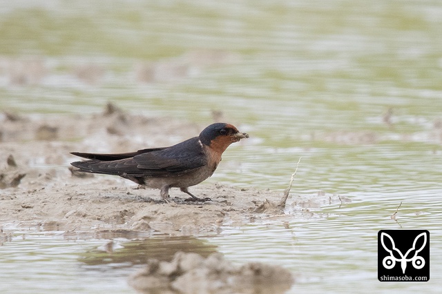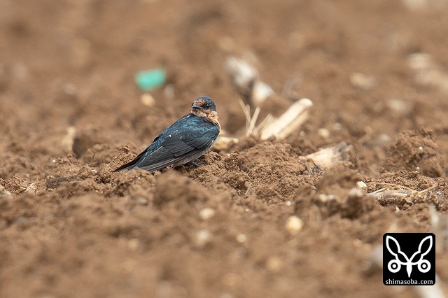 リュウキュウツバメの巣立ちビナ。田んぼに水を飲みにきていました。