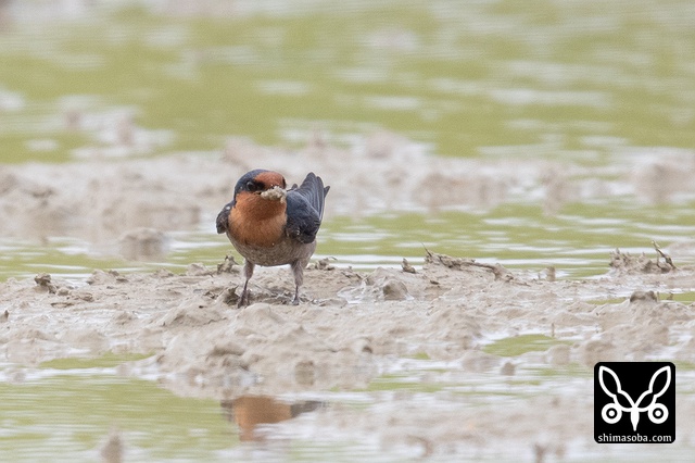 巣材集めで干潟を訪れたリュウキュウツバメ。数羽が忙しそうにやって来ていました。