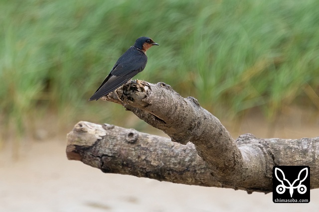 流木に止まるリュウキュウツバメ。数羽がたまに砂浜に降りていました。