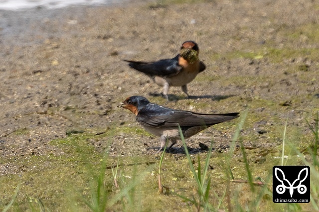 どちらがオスでどちらがメスか分かりませんが、2羽で泥を集めては同じ場所へ運んでいました。