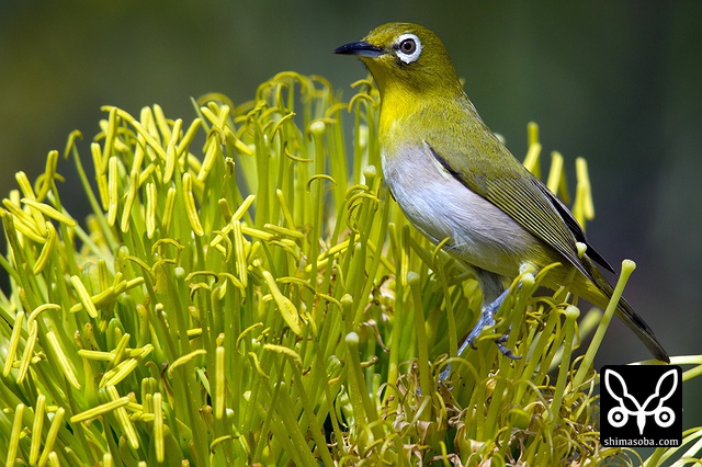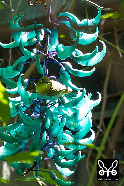 メジロが吸蜜にやってきました。100mmレンズなんで遠いー。^^;