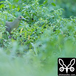 緑肥の植物? 実を数十羽の群れのズアカアオバトが食っていました。緑に見事に溶け込んでいます。