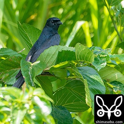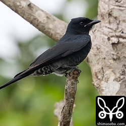 木陰で休むオウチュウ成鳥。金属光沢のある美しい姿です。