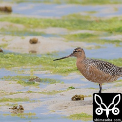 別の海岸にはオオソリハシシギ。こちらはノンストップで1万1000キロを飛べるとあって天候に恵まれた年は会えませんが、今回は台風の影響で4羽が飛来しました。
