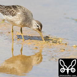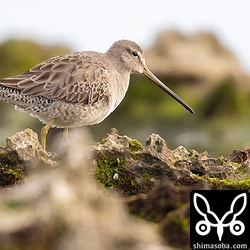 美しいオオハシシギ。種類によっては、すでに春の渡りがはじまっています。オオハシシギは夏羽になるまで滞在してくれないだろうか。