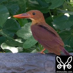 海岸でシギやチドリを見ていたらヘロヘロになったアカショウビンの幼鳥が防波堤に墜落するように舞い降りました。海上を渡っている最中だったのでしょうか? 疲れた様子のアカショウビンは海岸沿いの遊歩道の欄干で少し休むと海岸林内に消えて行きました。