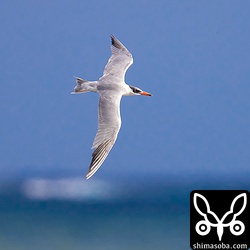 美しい石垣島の海をバックに飛翔するオニアジサシ。