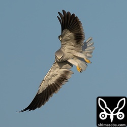 電線からしきりに草むらを気にしているカタグロトビの成鳥を発見。最初に止まっていた電線から一段低い電話線に移動。体の向きを変えると急降下しました。数秒後、草むらから飛び出てくると足には、すでに締められたクマネズミをつかんでいました。